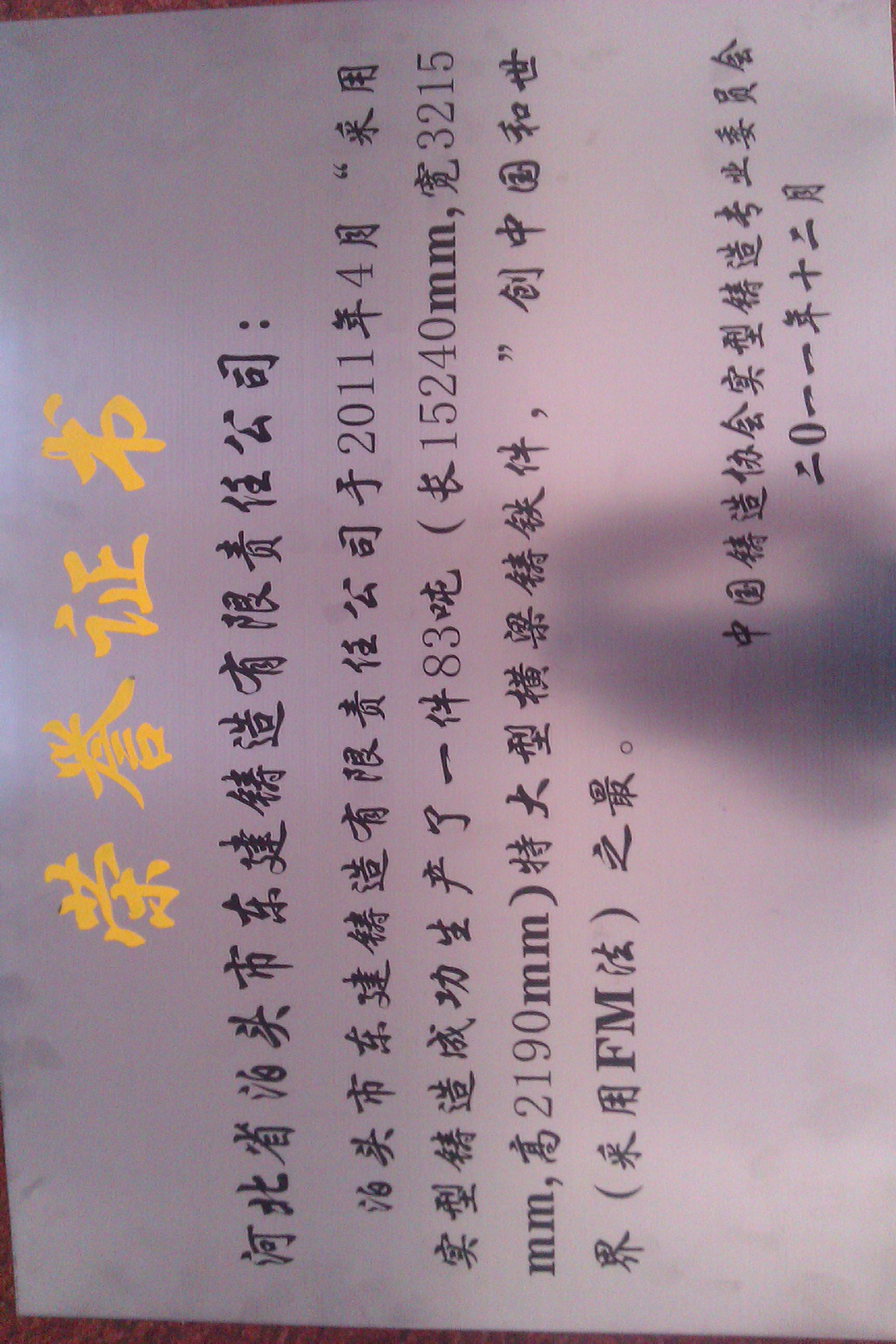 2011 年 12 月 27 日 ,在河北省泊頭市舉行了中國(guó)鑄造協(xié)會(huì)實(shí)型鑄造分會(huì) 企業(yè)榮譽(yù)證書頒發(fā)儀式。 近年來實(shí)型(消失模)鑄造了發(fā)展,泊頭市青峰機(jī)械有限公司和泊頭市東建...